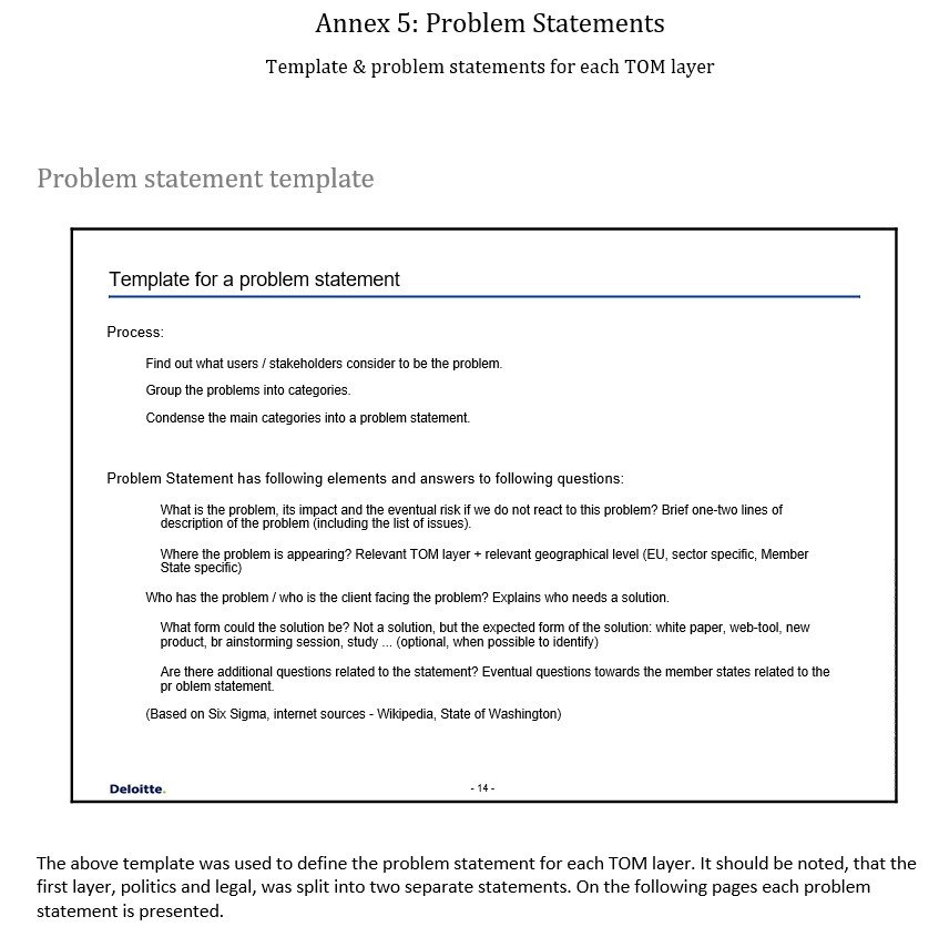 The problem statement is used by the organizations and businesses to execute projects that involve process improvement. This document should highlight the gap among the current performance level and the desired performance level. It should include relative or absolute measures of the problem to quantify the gap. However, it should contain expected solutions or causes.