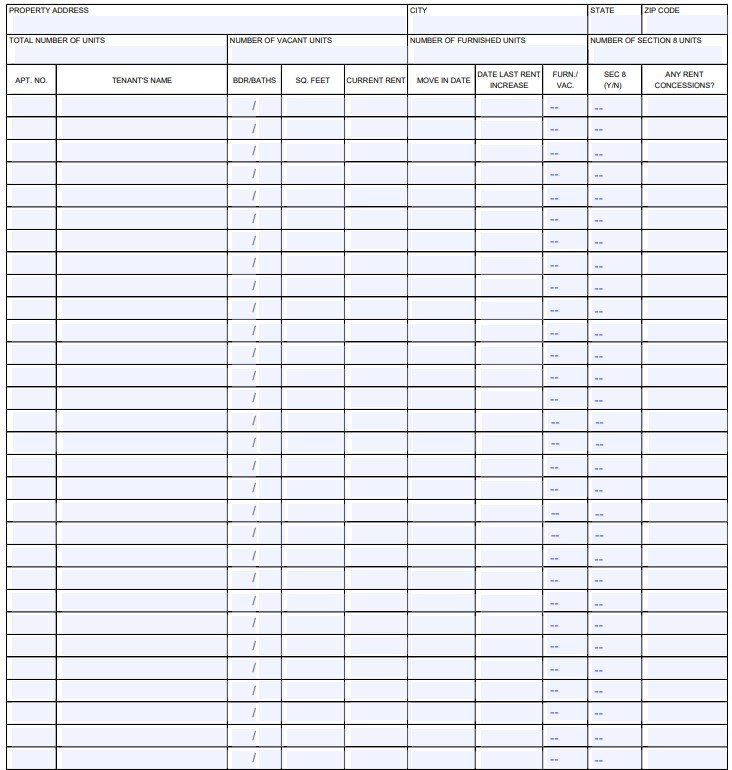 A rent roll is a document or report used by landlords and property managers to track rental income and tenant information. It is essentially a summary of your rental property’s financial status. The rent roll provides a detailed snapshot of each rental unit, listing the tenant’s name, rental amounts, lease dates, and other important data related to the property.