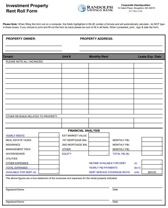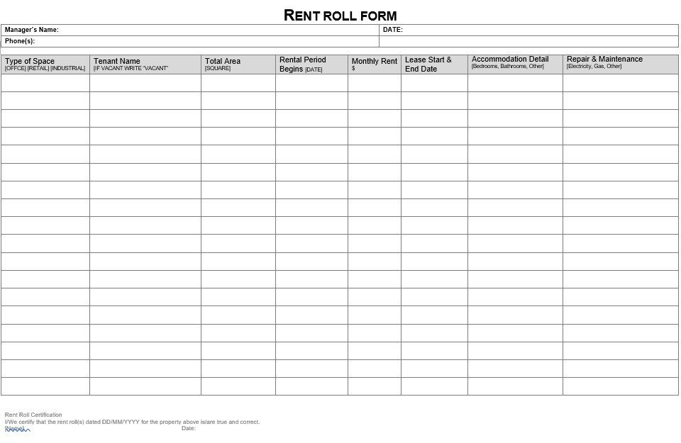 A rent roll template should be updated whenever rent is received, a tenant moves in or out, a lease changes, or any payment balance changes. Keeping it current is very important.